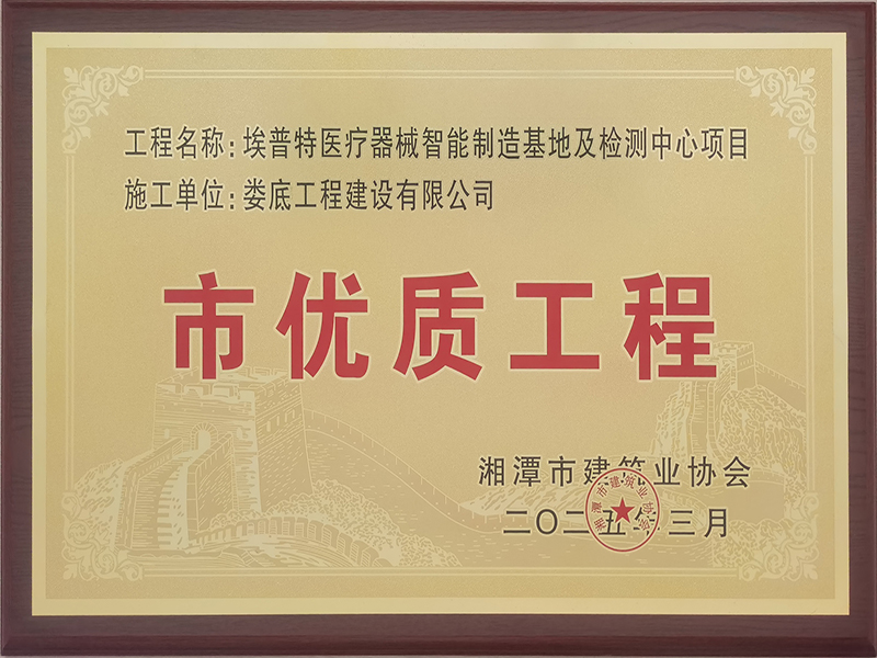 2024年度湘潭市優(yōu)質(zhì)工程牌匾(埃普特醫(yī)療器械智能制造基地及檢測(cè)中心)